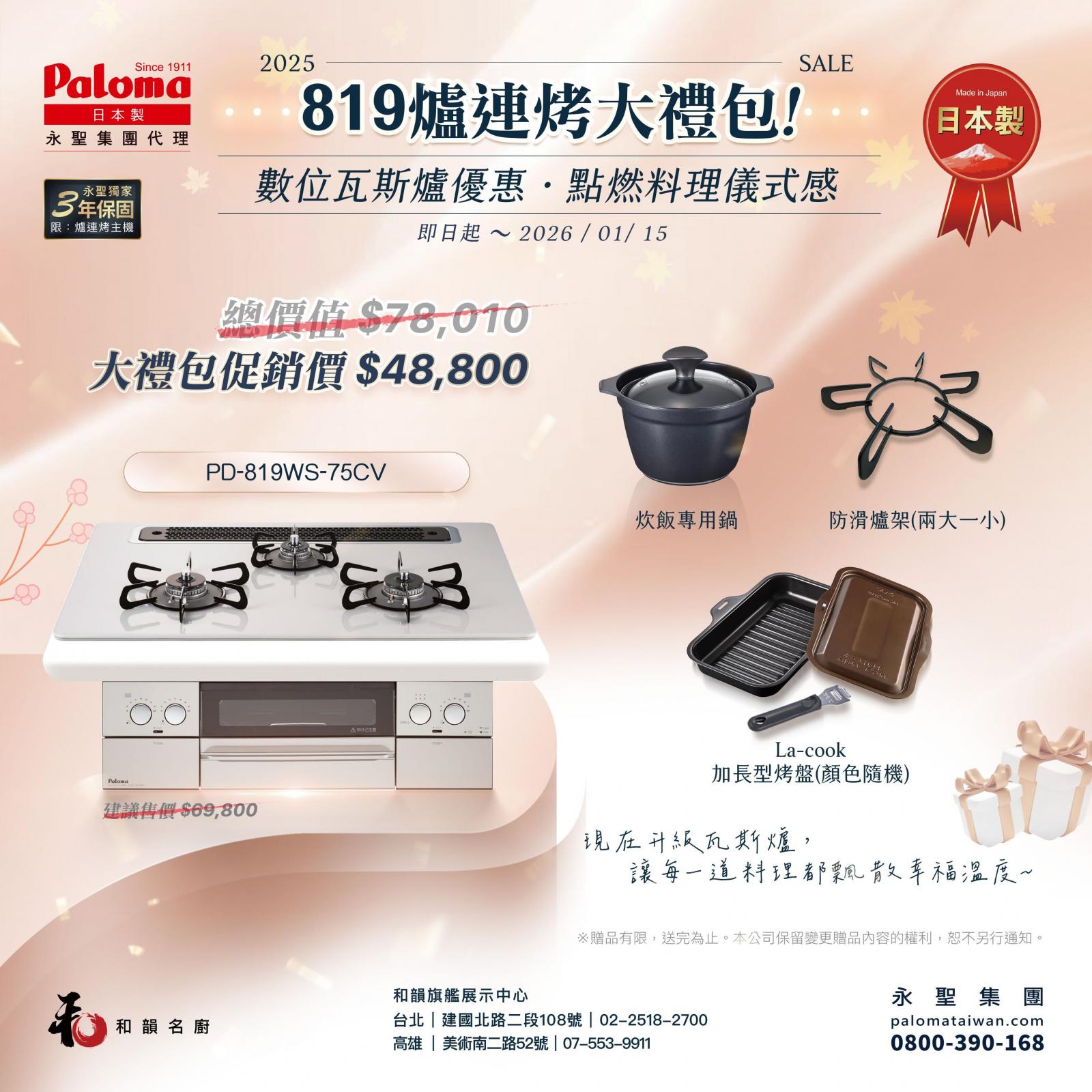 日本 Paloma-819爐連烤 超值大禮包限定優惠來了!